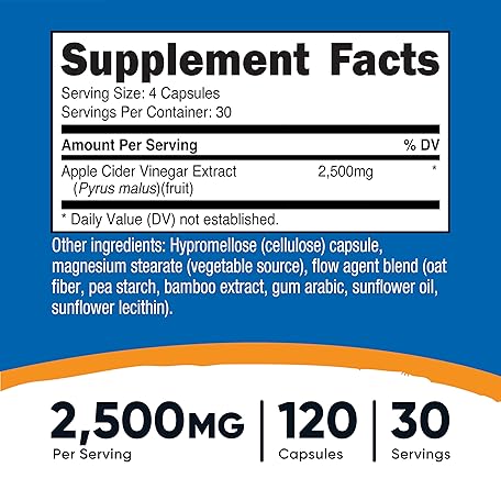 Nutricost Apple Cider Vinegar (2500mg) 120 Vegan Capsules - Gluten-Free, GMO-Free, 30 Servings