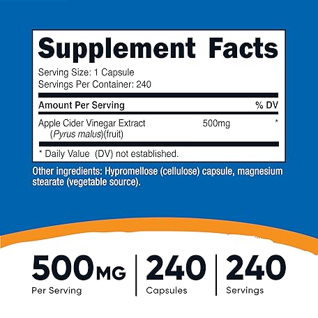 Thông tin sản phẩm Nutricost Apple Cider Vinegar Capsules 500mg, 240 Vegetarian Capsules - Natural, Vegetarian, GMP, Non-GMO and Gluten Free