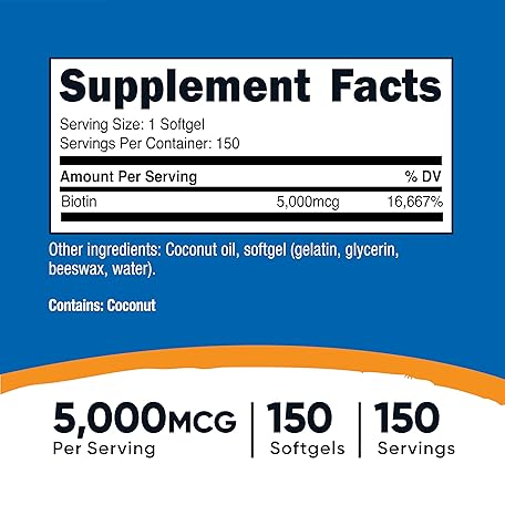Sản phẩm Nutricost Biotin (5,000mcg) 150 Softgels - Vitamin B7 - Gluten Free, Non-GMO đang được bán với giá ưu đãi là $15.2491 tại nước Mỹ.