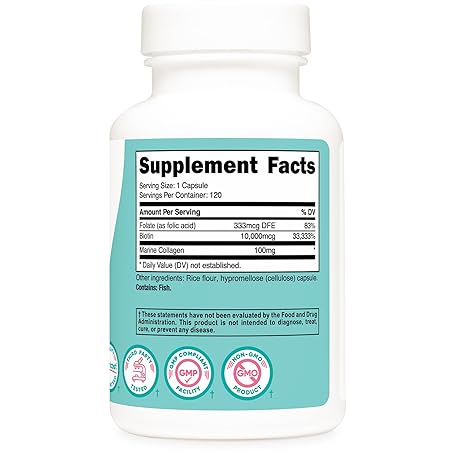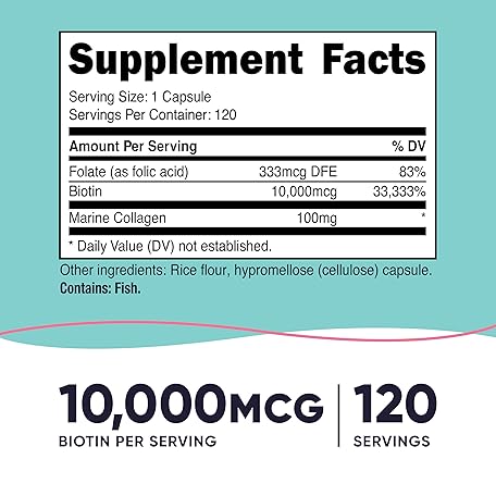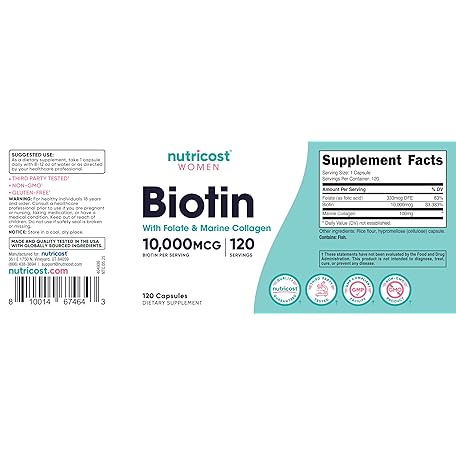 Thông tin sản phẩm Nutricost Biotin for Women 10,000mcg 120 Capsules - with Folate & Collagen, Gluten Free & Non-GMO
