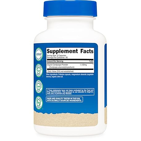 Thông tin sản phẩm Nutricost Cordyceps Mushroom Capsules 1100mg, 45 Serv - CCOF Certified Made with Organic, Vegetarian, Gluten Free, 550mg Per Capsule (90 Capsules)