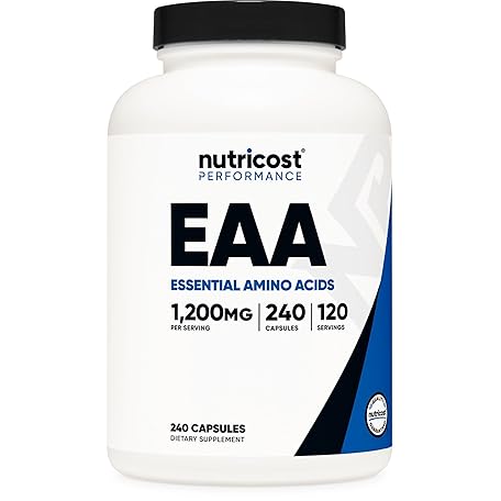 Sản phẩm Nutricost EAA Capsules 1200mg, 240 Capsules - Essential Amino Acids, 120 Servings - Non-GMO, Gluten Free & Vegan đang được bán với giá ưu đãi là $20.6555 tại nước Mỹ.