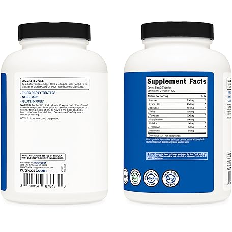 Thông tin sản phẩm Nutricost EAA Capsules 1200mg, 240 Capsules - Essential Amino Acids, 120 Servings - Non-GMO, Gluten Free & Vegan