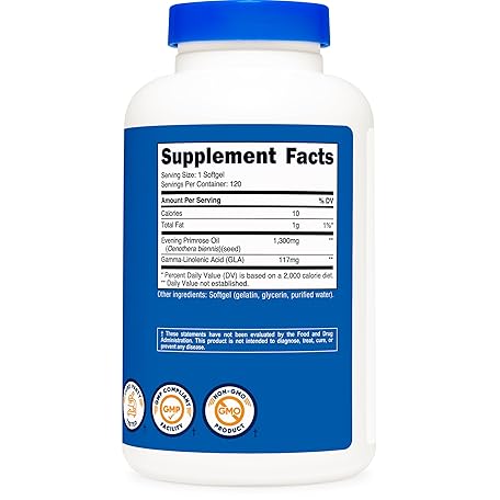 Thông tin sản phẩm Nutricost Evening Primrose Oil 1,300mg, 120 Softgels - Cold Pressed, Non-GMO, Gluten Free, 120 Servings