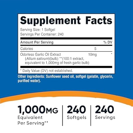 Sản phẩm Nutricost Garlic 1000mg, 240 Softgels - Odorless, Premium Gluten Free Supplement đang được bán với giá ưu đãi là $17.3855 tại nước Mỹ.