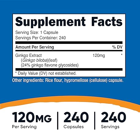 Sản phẩm Nutricost Ginkgo Biloba 120mg, 240 Capsules - Extra Strength Ginkgo Biloba Extract - Gluten Free & Non-GMO đang được bán với giá ưu đãi là $16.2955 tại nước Mỹ.