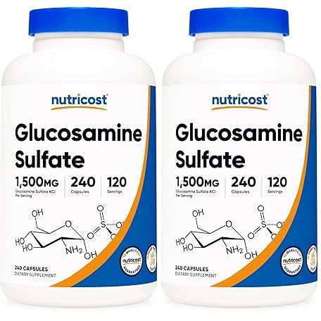 • Nutricost Glucosamine Sulfate 1500mg, 240 Capsules - 750mg Per Capsule, Gluten Free, Non-GMO (Pack of 2)