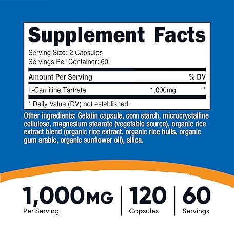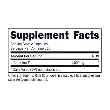 Sản phẩm Nutricost L-Carnitine Tartrate 1000mg, 120 Capsules - 500mg Per Capsule (60 Servings) đang được bán với giá ưu đãi là $16.2955 tại nước Mỹ.