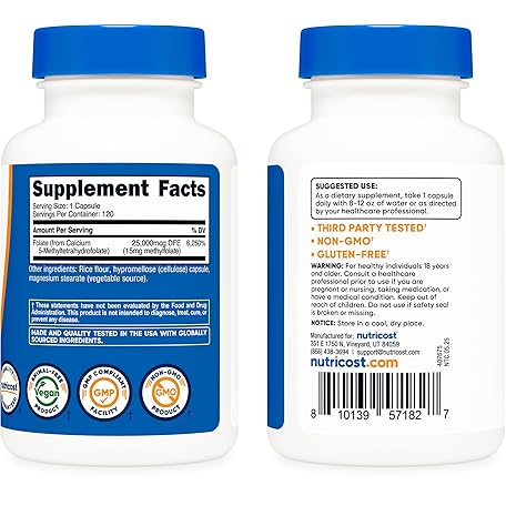 Thông tin sản phẩm Nutricost L-Methylfolate 15mg, 120 Capsules (5-MTHF) - Vegan, Non-GMO, Gluten Free