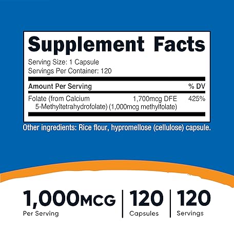 Sản phẩm Nutricost Methylfolate 1000mcg, 120 Vegetarian Capsules - Gluten Free, Non-GMO đang được bán với giá ưu đãi là $14.1155 tại nước Mỹ.
