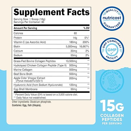 Thông tin sản phẩm Nutricost Multi Collagen Protein Complex (Unflavored, 30 Servings) - Supplement with Biotin, Hyaluronic Acid, and Collagen Peptides