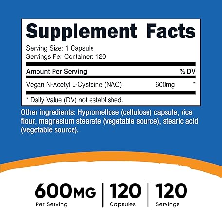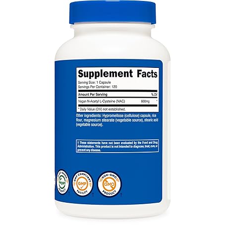 Thông tin sản phẩm Nutricost N-Acetyl L-Cysteine (NAC) 600mg, 120 Vegetarian Capsules - Non-GMO, Gluten Free, Vegetarian Caps