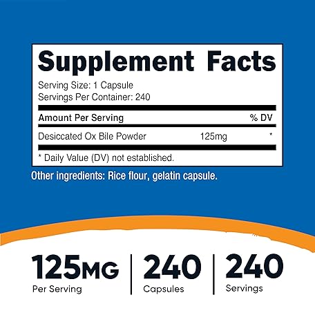 Sản phẩm Nutricost Ox Bile Capsules 125mg, 240 Capsules - Non-GMO đang được bán với giá ưu đãi là $21.7455 tại nước Mỹ.