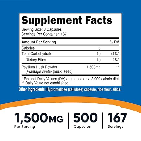 Sản phẩm Nutricost Psyllium Husk 1500mg Per Serving, 500 Capsules - Non-GMO & Gluten Free đang được bán với giá ưu đãi là $21.7891 tại nước Mỹ.