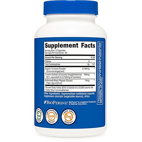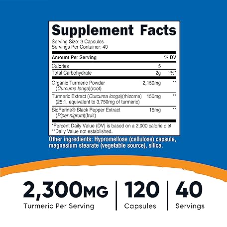Thông tin sản phẩm Nutricost Turmeric Curcumin with BioPerine and 95% Curcuminoids, 2300mg, 120 Capsules, Veggie Capsules, 767mg Per Cap, 40 Servings, Gluten Free, Non-GMO