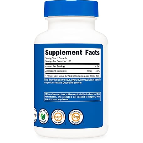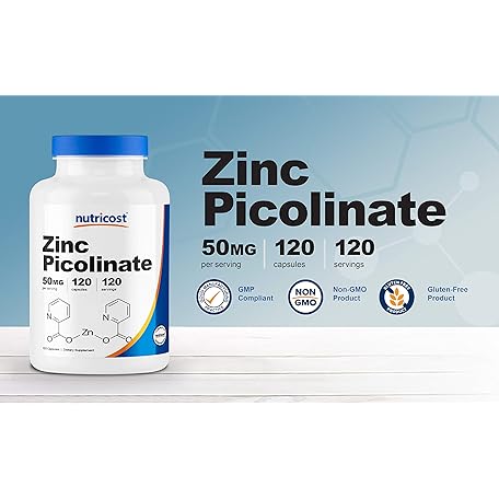 Sản phẩm Nutricost Zinc Picolinate 50mg, 120 Vegetarian Capsules - Gluten Free and Non-GMO đang được bán với giá ưu đãi là $16.2955 tại nước Mỹ.