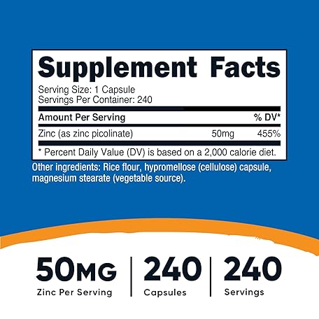 Sản phẩm Nutricost Zinc Picolinate 50mg, 240 Vegetarian Capsules - Gluten Free and Non-GMO (240 Caps) đang được bán với giá ưu đãi là $19.5655 tại nước Mỹ.