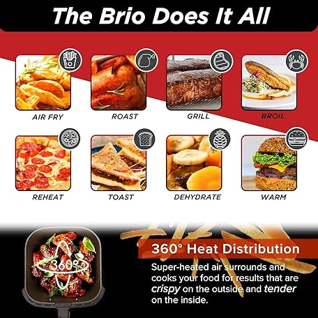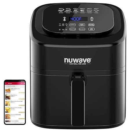 Thông tin sản phẩm Nuwave 6-quart Brio Healthy Digital Air Fryer with One-Touch Digital Controls, 6 Preset Menu Functions & Removable Divider Insert, Black