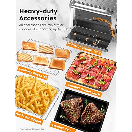 Thông tin sản phẩm Nuwave Bravo XL Pro Air Fryer Toaster Oven, Improved 100% Super Convection, Quicker & Crispier Results, 100 Presets, Multi-Layer Even Cooking, 50-500F, Smart Probe, PFAS Free, 30QT, Stainless Steel