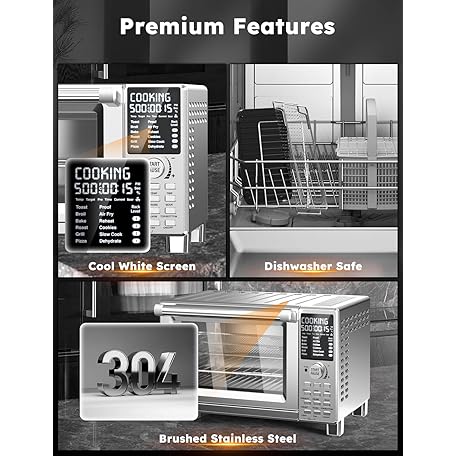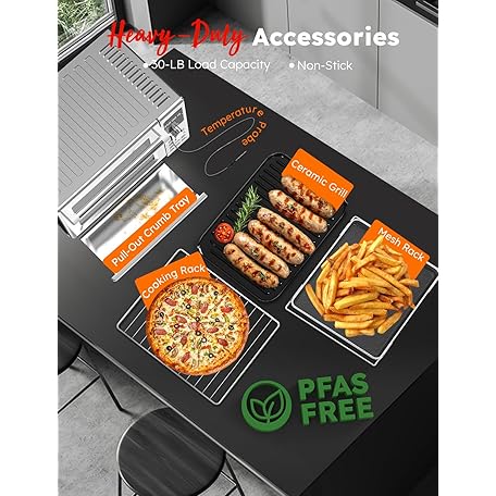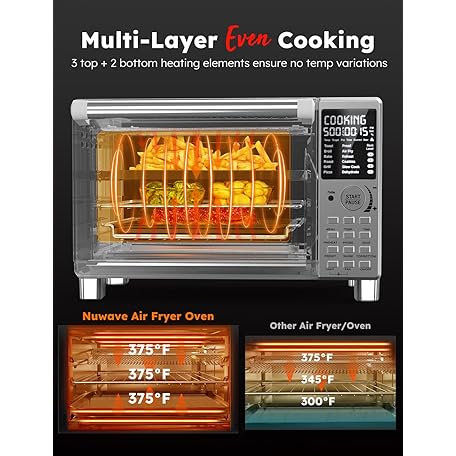Thông tin sản phẩm Nuwave Bravo XL Pro Air Fryer Toaster Oven with Grill Combo, 2025 New Ultra-Fast Convection System, 35% Crispier, 2X More Even, 142 Presets, 50-500F, Smarter Probe, PFAS Free, 30QT, Stainless Steel