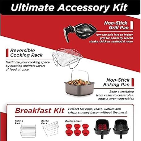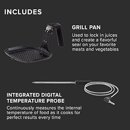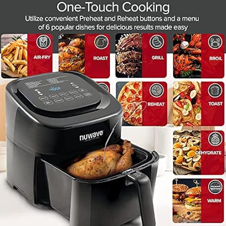 Thông tin sản phẩm Nuwave Brio 6-Quart Healthy Digital Smart Air Fryer with Probe One-Touch Digital Controls, Advanced Cooking Functions, Removable Divider Insert & Grill Pan (NEW ACCESSORY),Black
