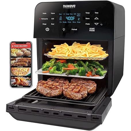 Thương hiệu Nuwave là cái tên nổi tiếng được rất nhiều khách hàng trên thế giới chọn lựa. Với kiểu dáng đẹp mắt, sang trọng, sản phẩm Nuwave Brio Air Fryer Oven, 15.5Qt X-Large Family Size, SS Rotisserie Basket &Skewer-Kit, Reversible Ultra Non-Stick Grill/Griddle Plate, Powerful 1800W, Integrated Smart Thermometer,Black là sự lựa chọn hoàn hảo nếu bạn đang tìm mua một món cho riêng mình.