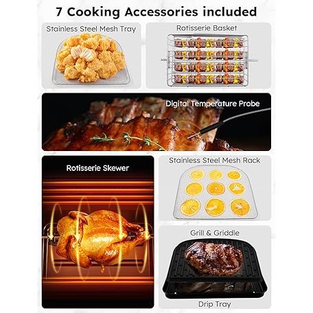 Thông tin sản phẩm Nuwave Brio Air Fryer Oven, 15.5Qt X-Large Family Size, SS Rotisserie Basket &Skewer-Kit, Reversible Ultra Non-Stick Grill/Griddle Plate, Powerful 1800W, Integrated Smart Thermometer,Black
