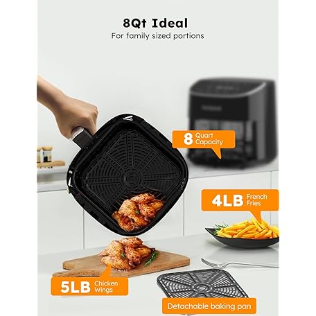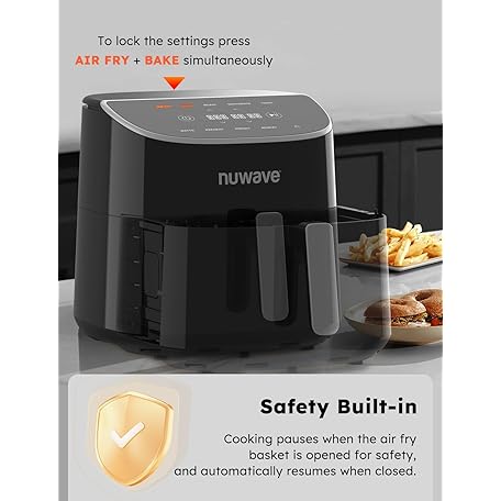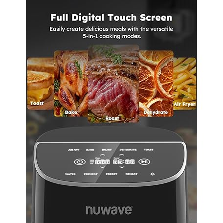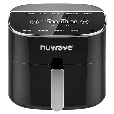 Thông tin sản phẩm Nuwave Brio Plus 8 Qt Air Fryer, PFAS Free, New & Improved, Digital Touch Screen, Cool White Display, 50°F~400°F in Precise 5°, 5 Cook Functions, 100 Presets & 50 Memory, 3 Wattages 700, 1500, 1800