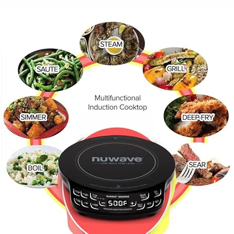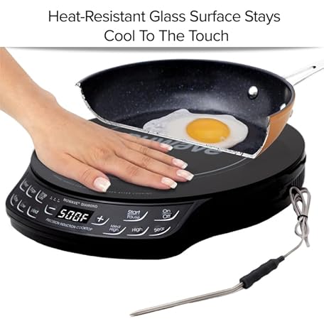 Thông tin sản phẩm Nuwave Diamond Induction Cooktop, New & Improved Electric Burner with Probe, 91 Temps 50°F to 500°F, 6.5” Heating Coil, Shatter-Proof Ceramic Glass, 3 Wattage Settings, Ideal for Dorms, RVs & Apts