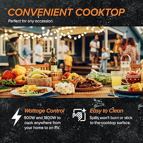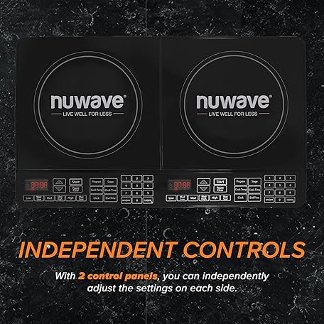 Thông tin sản phẩm Nuwave Double Cooktop Induction Countertop Burner, Portable, 900 & 1800W, 100°F to 575°F, Large 8” Heating Coil, 50 Pre-Programmed Settings, Shatter-Proof Ceramic Glass, Built-In Safety Auto Shut Off