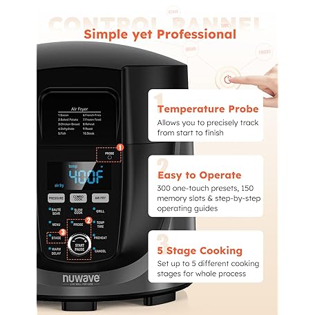 Thông tin sản phẩm Nuwave Duet Electric Pressure Cooker & Air Fryer Combo, 450 IN 1 Slow Cooker & Grill with Integrated Digital Temp Probe, 6qt SS Pot, Adjustable High/Low Pressure, Built-in Sure-Lock Safety Tech