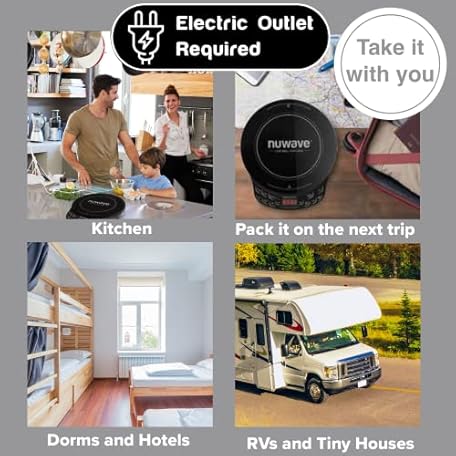 Thông tin sản phẩm Nuwave Flex Precision Induction Cooktop, 10.25” Shatter-Proof Ceramic Glass, 6.5” Heating Coil, 45 Temps from 100°F to 500°F, 3 Wattage Settings 600, 900 & 1300 Watts, Black (Renewed)