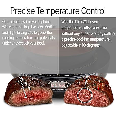 Thông tin sản phẩm Nuwave Gold Precision Induction Cooktop, Portable, Large 8” Heating Coil, 12” Shatter-Proof Ceramic Glass Surface, 3 Wattage Settings 600, 900, and 1500 Watts, 9” Duralon Non-Stick Fry Pan Included