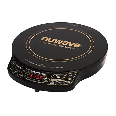 Thông tin sản phẩm Nuwave Gold Precision Induction Cooktop, Portable, Large 8” Heating Coil, 12” Shatter-Proof Ceramic Glass Surface, 51 Temp Settings from 100°F - 575°F, 3 Watt Settings 600, 900, & 1500 Watts (Renewed)
