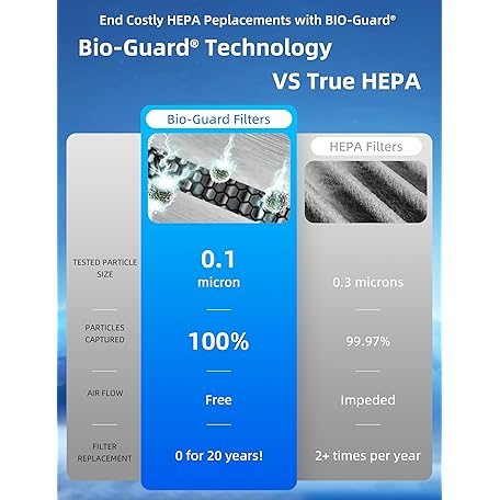 Thông tin sản phẩm Nuwave OxyPure ZERO Air Purifier with Washable and Reusable Bio Guard Tech Air Filter, Large Room Up to 2002 Ft², Air Quality Monitor, 0.1 Microns, 100% Capture Irritants like Smoke, Dust, Pollen