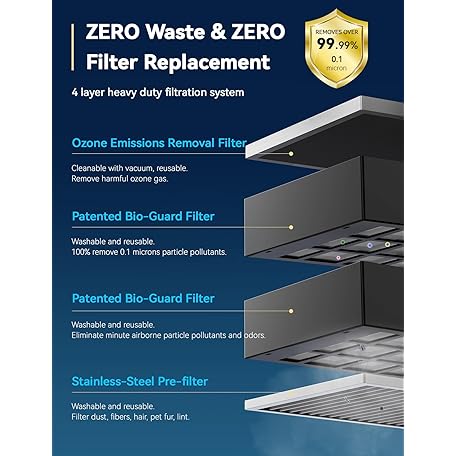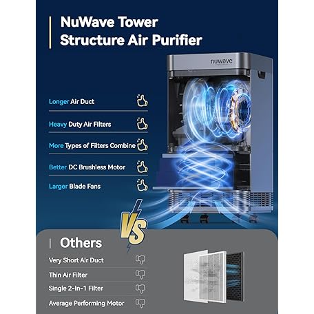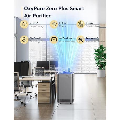 Thông tin sản phẩm Nuwave OxyPure Zero Plus Air Purifier, Save on Filter Replacements, Covers up to 3210ft² Large Room with Powerful Motor, Captures 99.99% of Particles, Dust, Smells, Sleep Mode for Bedroom