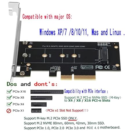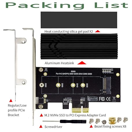 Thông tin sản phẩm NVMe M.2 Adapter PCIe SSD to PCI-e X4 / X8 / X16 Controller Expansion Card, M.2 (NGFF) SSD Pcie Adapter Converter Card with with Aluminum Heat Sink for M.2 (M Key) NVMe SSD 2280/2260/2242/2230