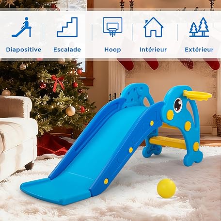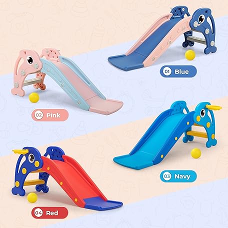 • NYEEKOY 3 in 1 Toddler Slide, Baby Slide Plastic Climber Playset with Basketball Hoop and Ball, Indoor and Outdoor Playground for Kids