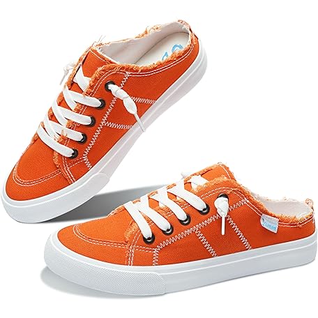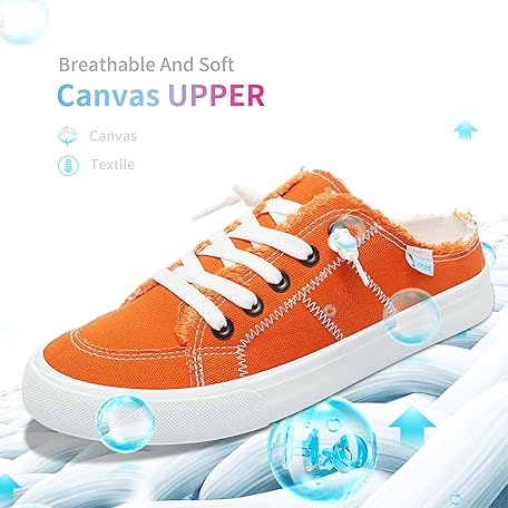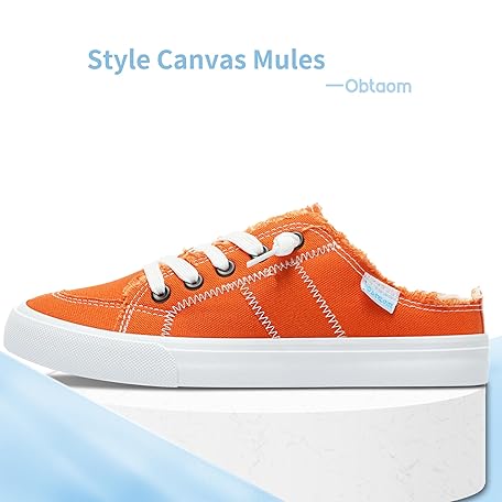 • Obtaom Women Canvas Mules Memory Foam Clipper Fashion Sneakers Comfortable Slip-On Mule Backless Holiday Shoes