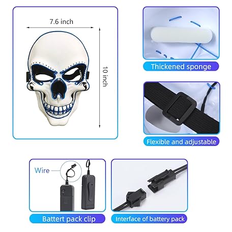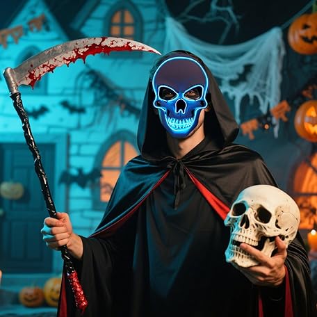 • OceanWings Halloween Mask LED Light up Costumes Scary Mask for Party Supplies Favor