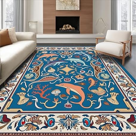 • ODIKA Ultra Soft Area Rug 2x3, Enchanting Nautical Voyage Interlocking Sea Creatures, Non Slip, Stain Resistant, Washable Area Rugs for Living Room, Bedroom(Blue, 2x3)