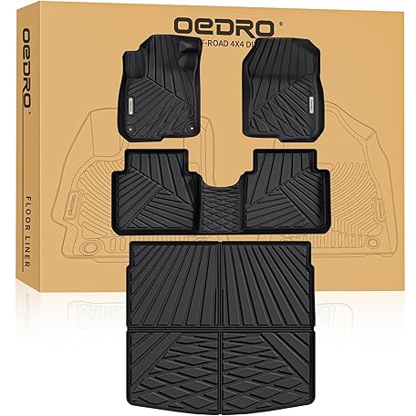 oEdRo Floor Mats Fit for 2017-2022 Honda CR-V (NOT for Hybrid), TPE All-Weather Custom Fit for Front, Rear & Cargo Mat in Upper(Highest) Position, Honda CRV Mats Accessories, Black