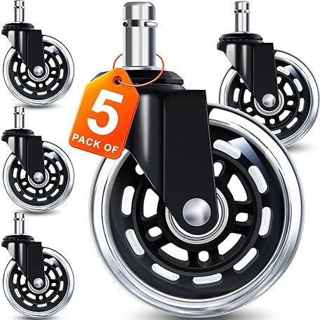 Office Chair Wheels for Casters Replacement - 3" Rubber Wheels for Computer Gaming Desk Caster Smooth & Safe Rolling for All Floors Including Hardwood and Carpet - Set of 5 - Modern