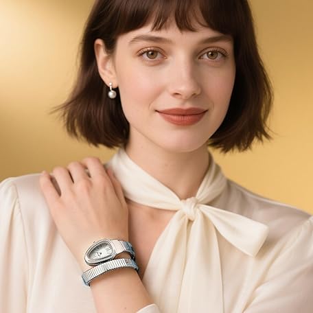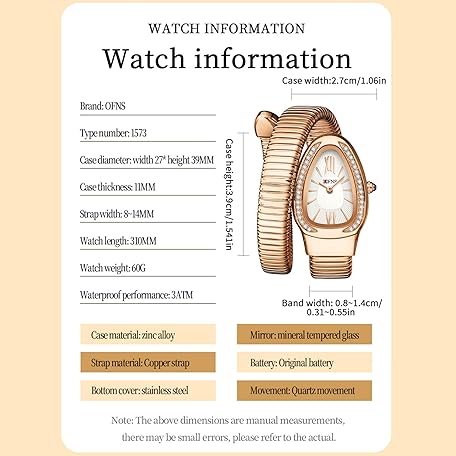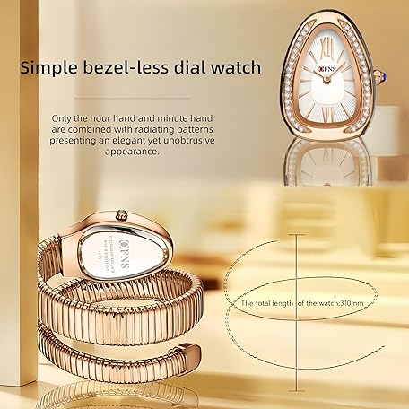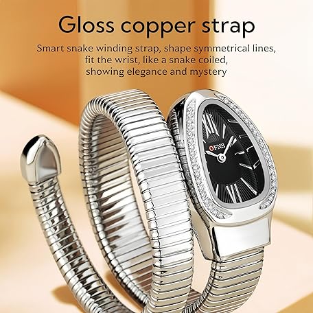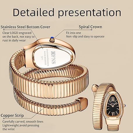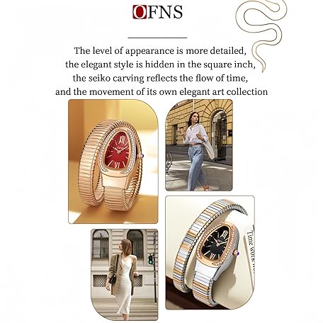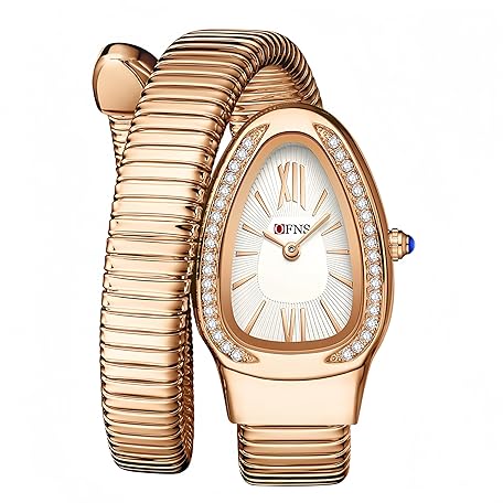 • OFNS Snake Watches for Women Luxury Women's Snake Shape Bangle Watch Diamond Quartz Wristwatch Ladies with Roman Numerals Dial