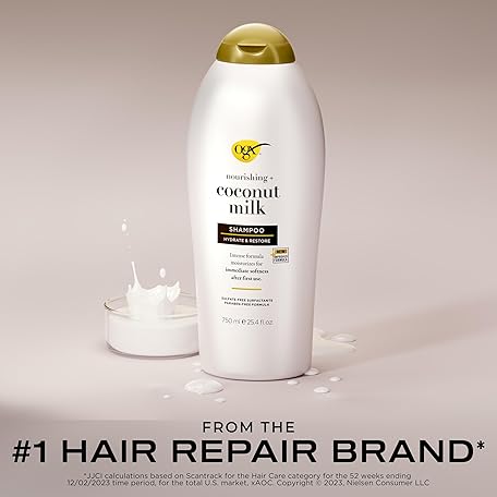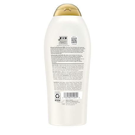 Thông tin sản phẩm OGX Nourishing + Coconut Milk Shampoo, Hydrating & Restoring Shampoo Moisturizes for Soft Hair After the First Use, Paraben-Free, Sulfate-Free Surfactants, 25.4 fl. oz