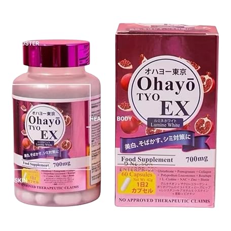 OhayoTokyo EX Lumine White Food Supplement, Pomegranate Extract with Glutathione, Collagen, 60 Capsules, 700mg