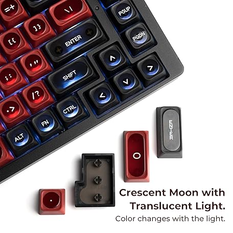 Sản phẩm OHY XVX MAX Profile Translucent Shine-Through Keycaps, 136-Key PBT Keycaps with Crescent Moonlight Design for 75% Mechanical Keyboards (Black & Red Custom Jelly Style) đang được bán với giá ưu đãi là $10.8891 tại nước Mỹ.