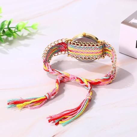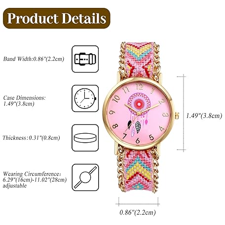 • OIDEA Braided Elastic Strap Watch for Women: Bohemian Dreams Catcher Dial Bracelet Wrist Watches Fashion Weave Watch
