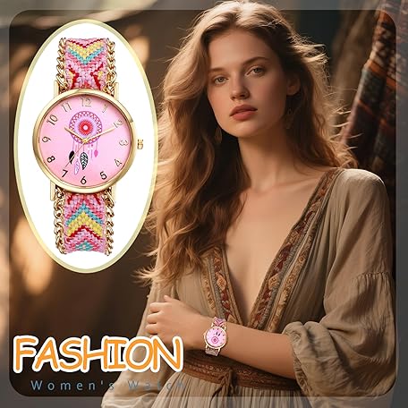 OIDEA Braided Elastic Strap Watch for Women: Bohemian Dreams Catcher Dial Bracelet Wrist Watches Fashion Weave Watch