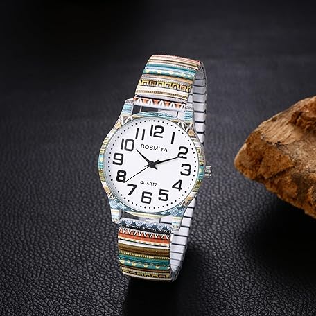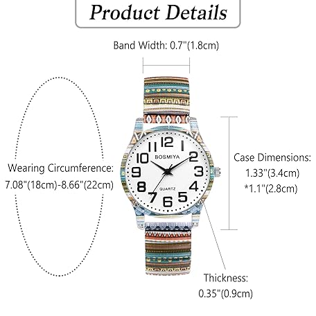 OIDEA Stretch Band Watches for Women: Bohemia Flower Easy Reader Elastic Band Watch Large Face Big Number Analog Quartz Bracelet Watch Expansion Band Wristwatch